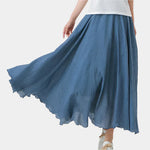 Obnovte svůj letní šatník s touto dlouhou sukní z lehkého materiálu. Široký střih a přirozený pohyb vytvářejí éterický vzhled, který ohromí na každém kroku.