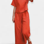 Seznamte se s lehkým a stylovým letním setem, který spojuje vzdušnou blůzu s krátkým rukávem a pohodlné kalhoty ve volném střihu. Tento komplet je ideální pro horké dny – poskytuje svěží komfort, aniž by obětoval eleganci.