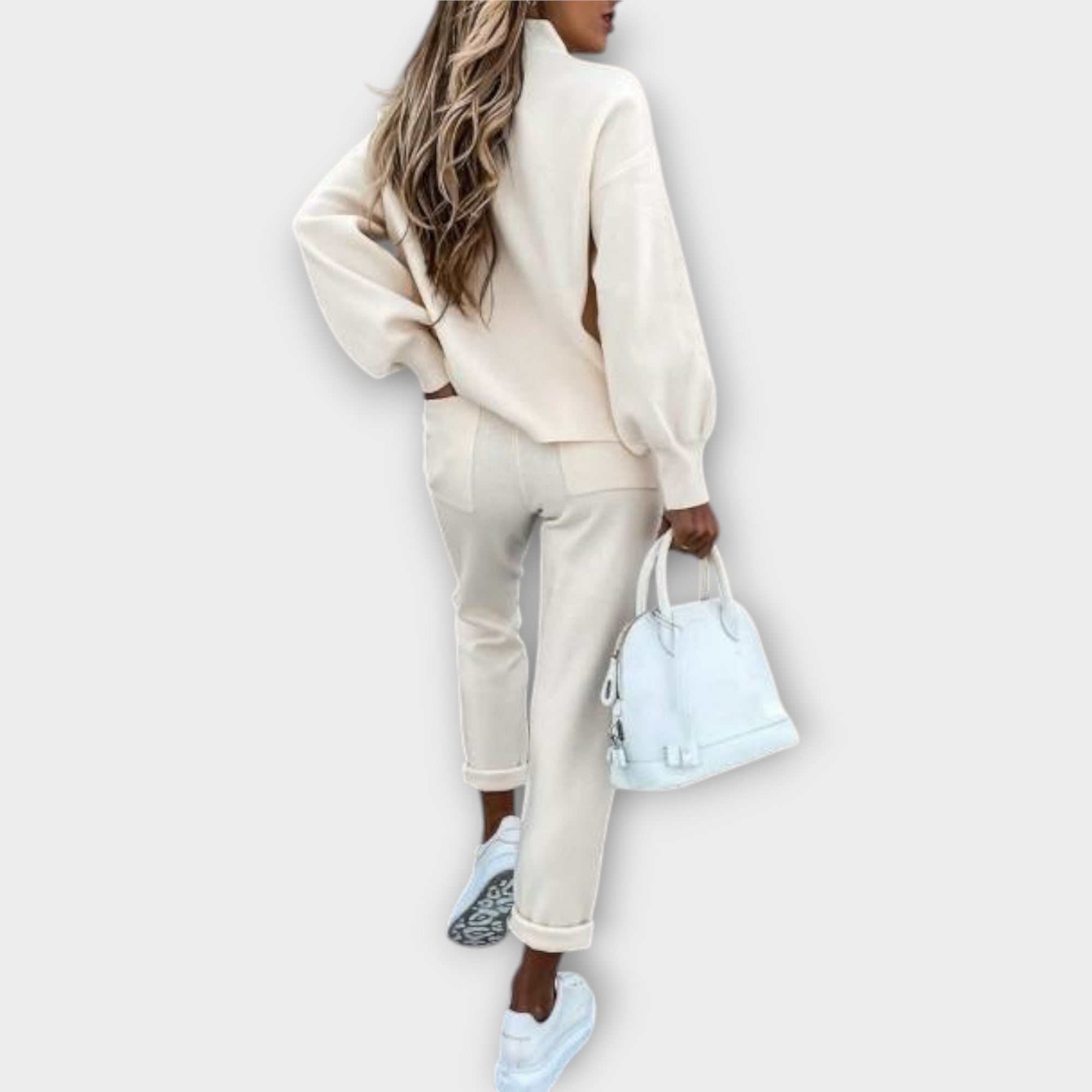 Set s pohodlným střihem a nadčasovou elegancí – jedinečný set, který se snadno přizpůsobí vašemu stylu a dodá každé kombinaci dokonalé finální tečku. Jeho všestranný design je ideální pro příležitost, od lehkých casualů po sofistikované vzhledy.