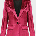 Elegantní sako ve vybraném, jemně elegantním střihu s bohatou velurovou texturou, která dodává každému outfitu nádech luxusu a noblesy. Klasický límec jako tlačítko na přední straně vytvořil mezi nadčasovostí a moderním stylem.