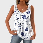 Letní Top S Bílou Základnou A Modrými Květinami Volný Střih