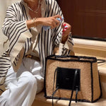 - Pruhovaný vzor s tradičním charakterem pro univerzální styling.