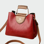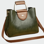 Elegantní kabelka v černé a hnědé dvoubarevné kombinaci, která spojuje luxus a praktičnost. Kovové úchyty s potahem nabízejí jedinečný charakter a stabilní uchopení, zatímco dlouhý odnímatelný popruh umožňuje nošení i přes rameno. Prostorný vnitřek poskytuje dostatek místa pro každodenní nezbytnosti, což ji činí ideální pro profesionální a elegantní vzhledy.