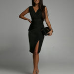 Elegantní Midi Šaty SV Dekoltem A Rozparkem Pro Slavnost