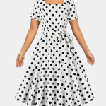 Retro Puntíkaté Šaty S Páskem A Čtvercovým Výstřihem