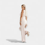 Detaily střihu jemně obepínají pas a nechávají volný pohyb v kroku a po kolenou, zatímco lehká látka poskytuje vzdušný pocit i při venkovních setkáních.