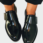 Luster Kožené Loafers S Páskem Vysoký Lesk Elegantní Vzhled