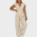 Objevte celotělový overal s jemně elegantním střihem, který zdůrazní vaši ženskost s diskrétní rafinovaností. Jeho univerzální design se hodí pro každou příležitost – od volných dnů po formálnější momenty. Tento kousek spojuje pohodlí s nadčasovou elegancí a nabízí minimalistickou estetiku s vytříbeným charakterem.