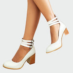 Minimalistický design s páskami kolem kotníku pevné usazení nohy a celkově zajišťuje pohodlnost, zatímco masivní blokový podpatek zvyšuje stabilitu chůze.