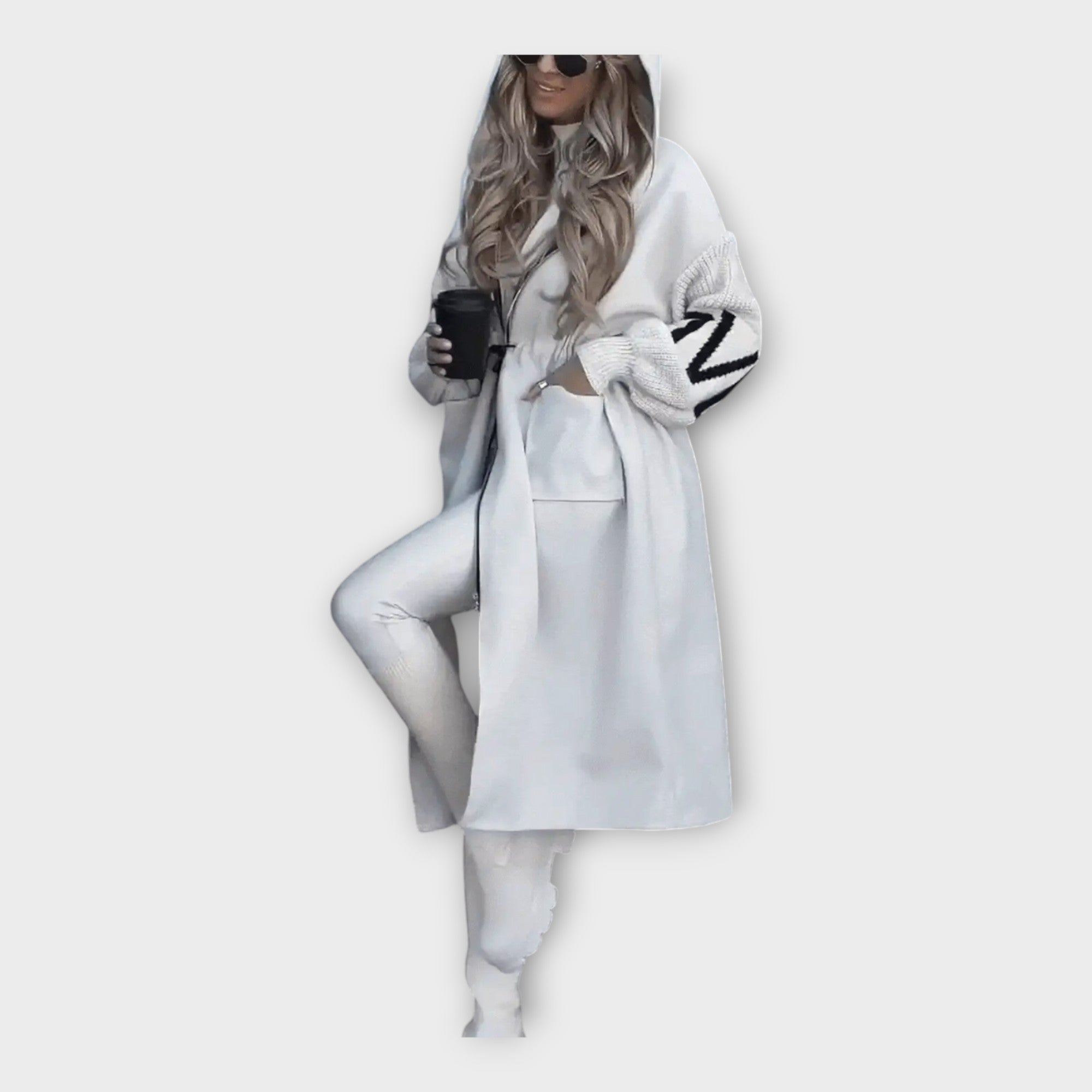 Elegantní dlouhý kabát s moderními detaily spojuje pohodlí s nadčasovou elegancí a dodá poslední tečku každému outfitu. Jeho moderní a flexibilní střih se hodí pro každou příležitost – od neformálních vycházek po sofistikované večery. Tento kousek přináší styl a praxi vašeho šatníku a stane se vaším společníkem po celý rok.