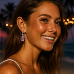 Objevte tyto vynikající náušnice, které jsou vyrobeny s precizní ruční prací a spojují eleganci s romantickým designem. V teplém zlatém odstínu představují vodopád z fialových kamenů a třpytivých bílých krystalů, které jsou dokonale broušeny, aby vytvořily okouzlující hru světla. Každý kámen je ručně zasazen, což činí každý pár jedinečným a nezaměnitelným.
