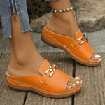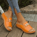 Chic komfort, který si zamilujete hned na první došlapání — Laura Orthopedic Leather Sandals pro ženy, které hledají oporu bez kompromisů ve stylu. Otevřený prst, měkký kožený svršek a stylový zlatý řetízek dodávají krok šmrnc, zatímco polstrovaná stélka podporuje nohu po celý den.