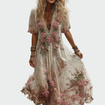 Objevte lehkost letních dnů s našimi lněnými maxi šaty s květinovou výšivkou , které spojují ženskost, eleganci a boho šarm. Romantický dlouhý střih, hluboký dekolt a krátké rukávy poskytují lehký, vzdušný vzhled, zatímco průsvitná látka s květinovými motivy dodává umělecký nádech. V odstínech růžové a zelené vyvedené výšivky působí jemně a romanticky – ideální volba pro letní večery, svatby a výjimečné příležitosti.