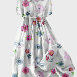 Zažijte svěží jaro s tímto maxi šaty s bílou základní a pestrým květinovým potiskem doplněným o jemné motýly. Pohodlný střih a lehká textilie dělají z tohoto kusu ideální volbu pro každodenní nošení i odpolední procházky.