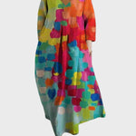 Hledejte šaty, které spojují umělecký půvab s lehkým letním pohodlím. Midi šaty s výrazným barevným abstraktním vzorem, který připomíná obraz od moderního malíře, budou okamžitě upoutat pozornost. Volný střih zajišťuje pohodlí po celý den, zatímco V- výstřih a 3/4 rukávy dodávají šarm a ženství.