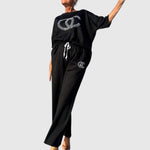 Objevte tuto pohodlnou dvoudílnou sadu, která kombinuje jednobarevnou blůzu s volnými kalhotami a tak spojuje komfort a styl. Nadčasový design umožňuje nosit sadu po celý rok – buď samostatně, nebo dohromady.