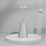 Elegantní a odolný design : Naše bezdrátová LED stolní lampa je vyrobena z nerezového hliníku a má matný lakovaný povrch. Má elegantní kuželovitý tvar a je velmi robustní. Protiskluzové podložky zajišťují stabilitu na všech površích, zatímco USB nabíjecí port přidává praktický a moderní prvek. Exkluzivní design je vhodný jak pro interiér, tak pro exteriér a stylově a funkčně zkrášluje váš prostor.