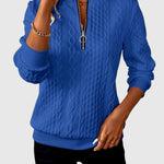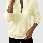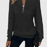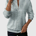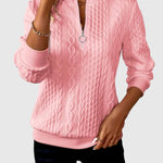 Kateřina — Pletený svetr s copánkovým vzorem a zipem.