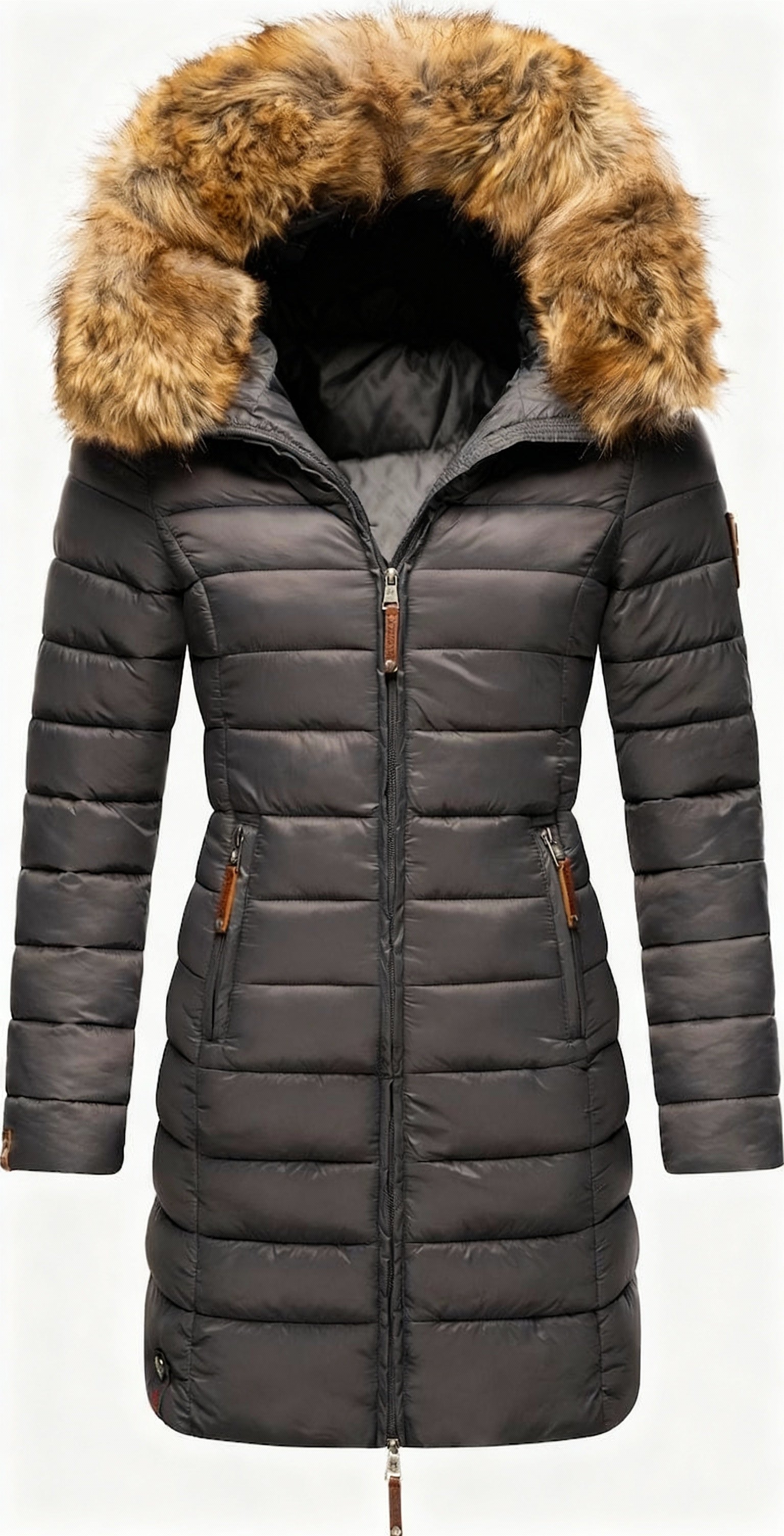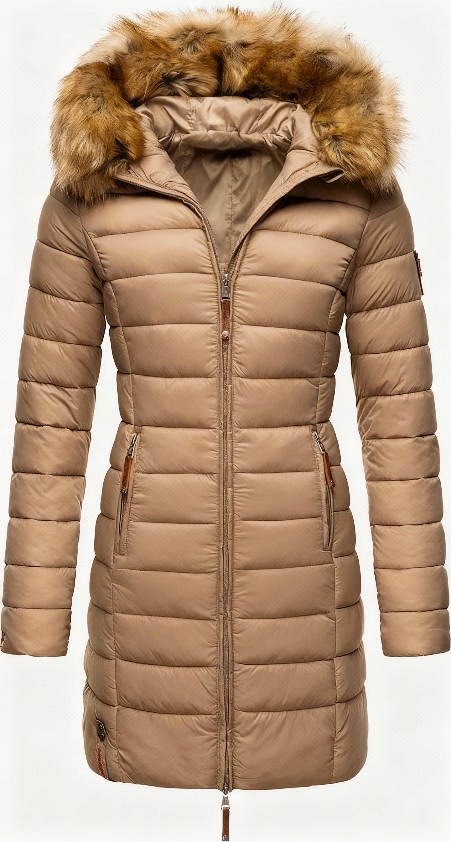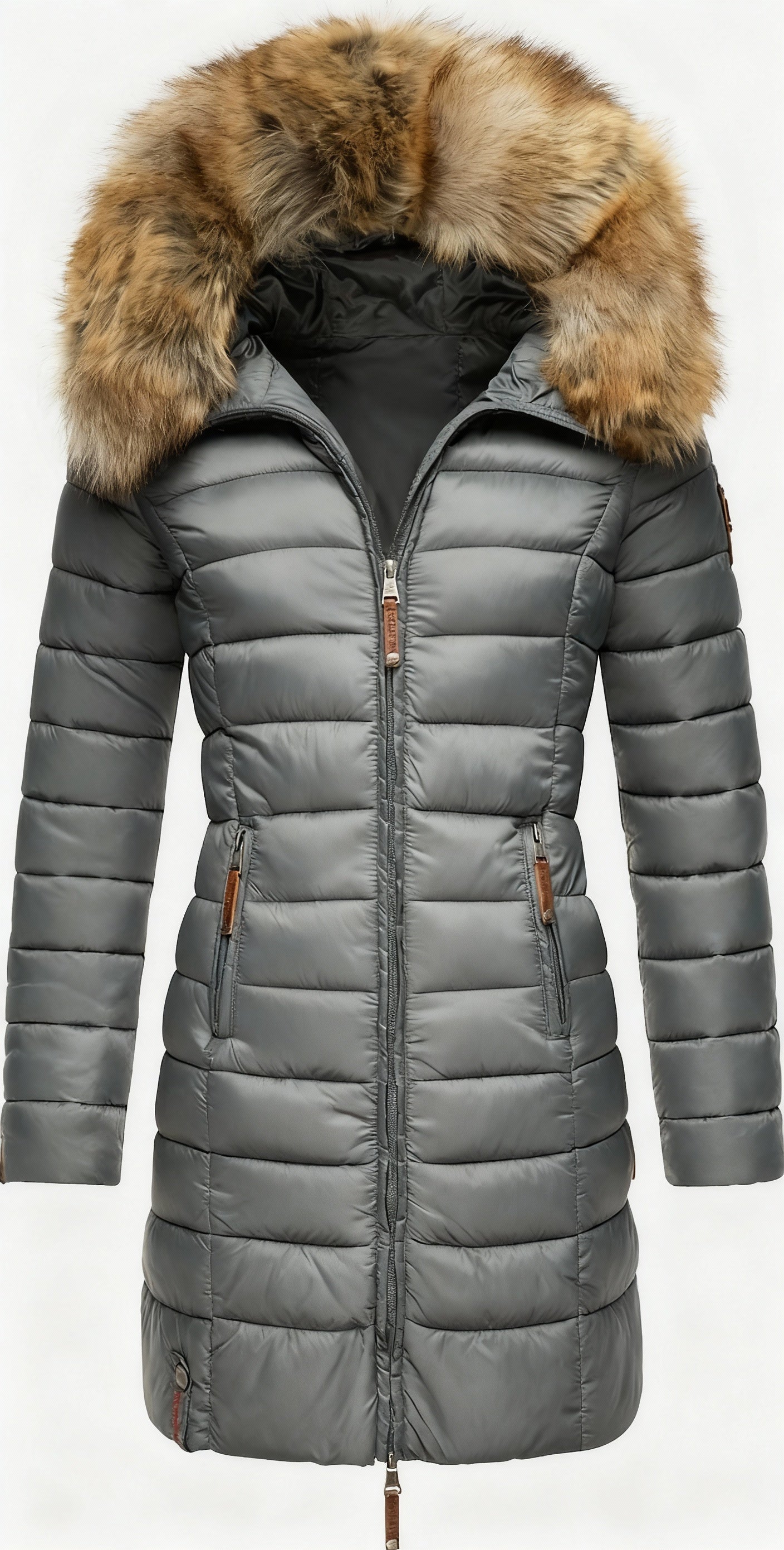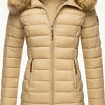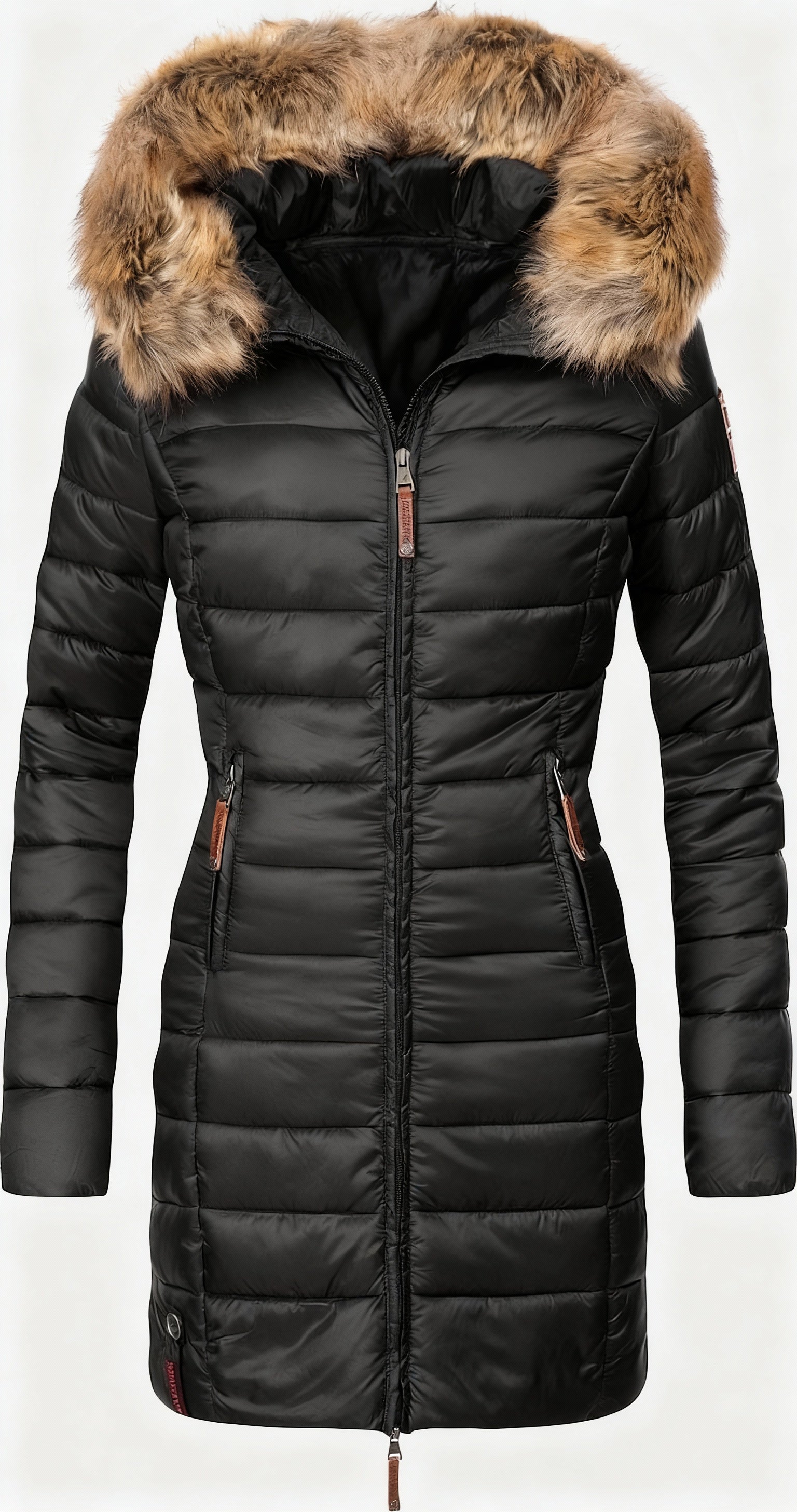 DOMINIKA - Prošívaný kabát s kožešinovou kapucí