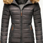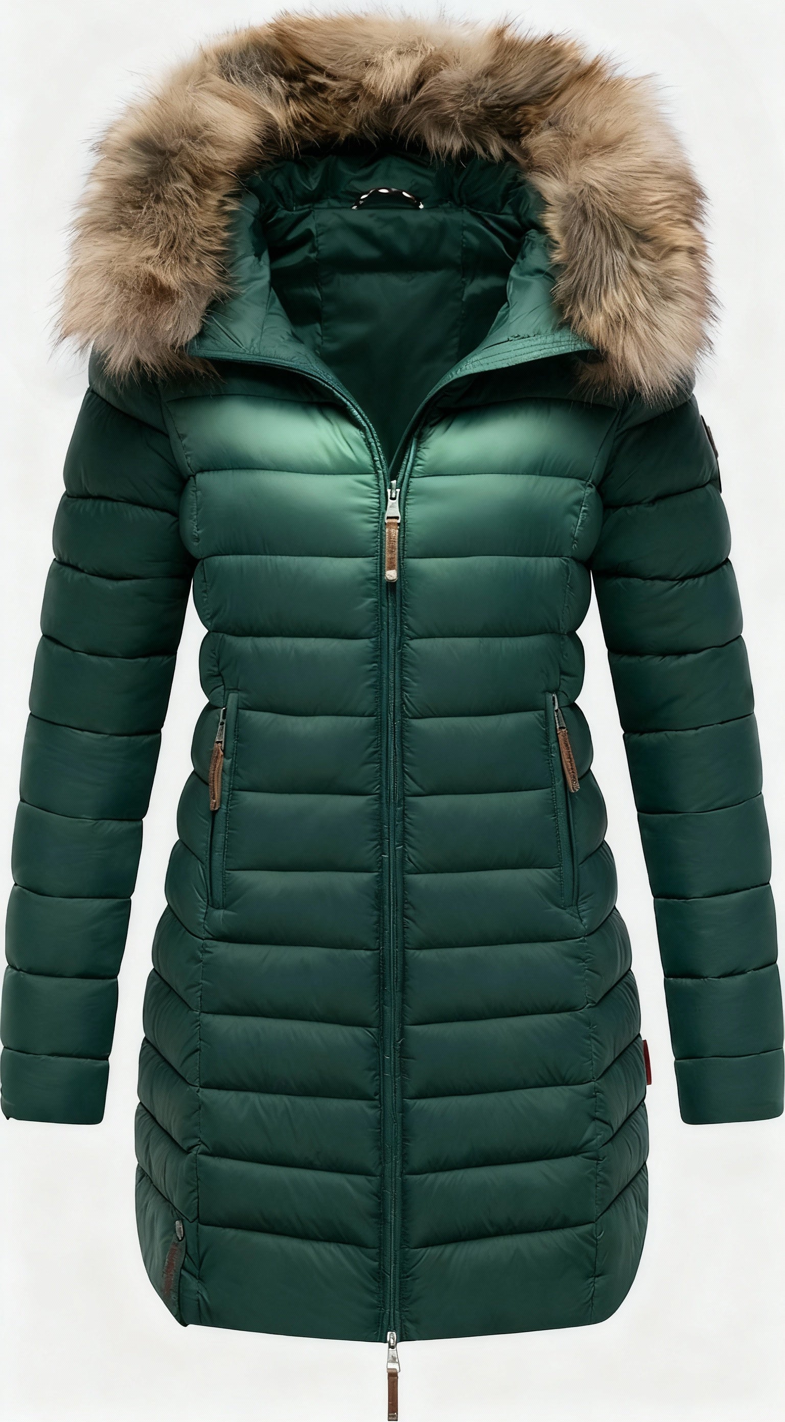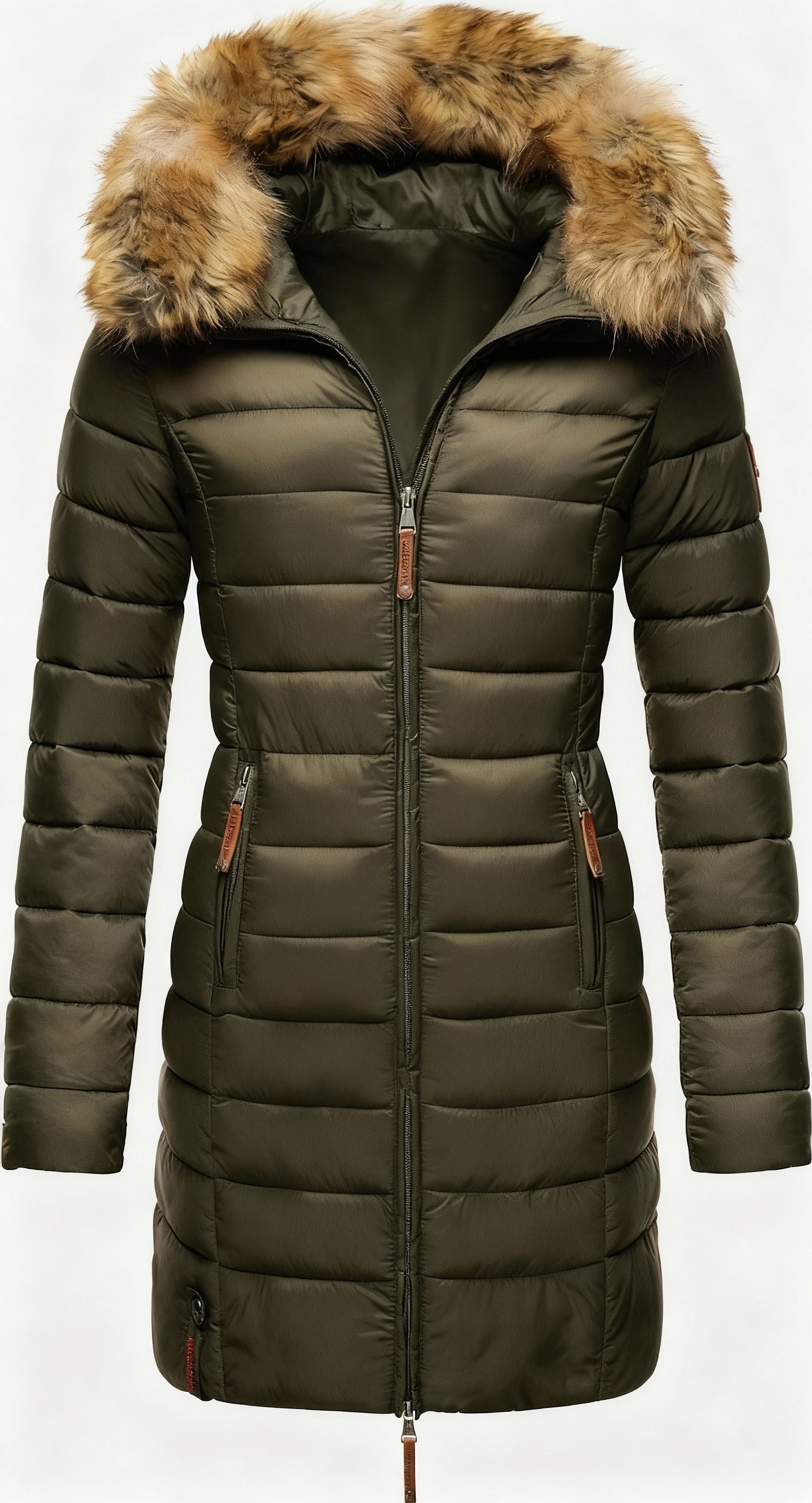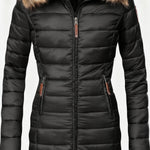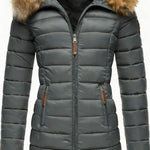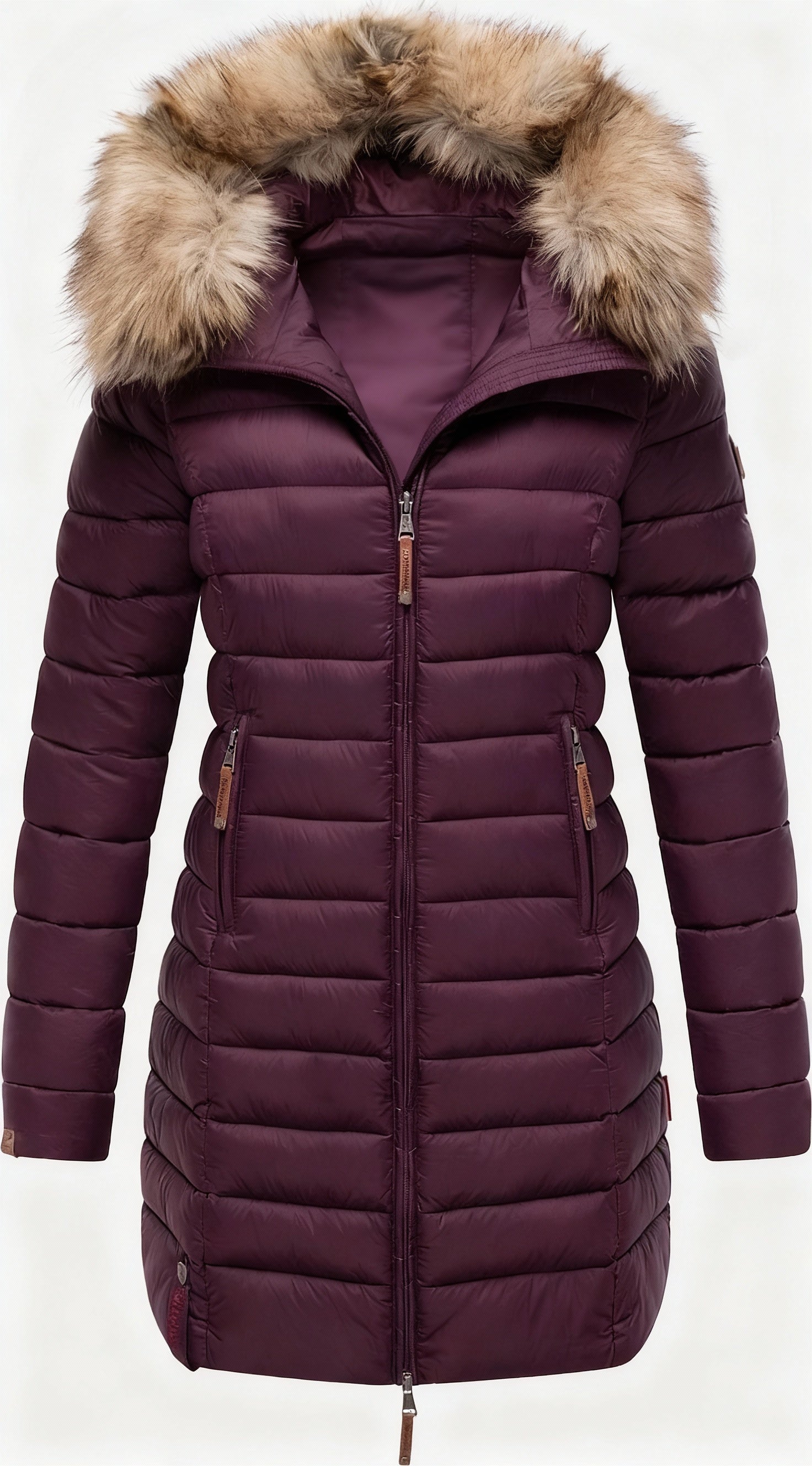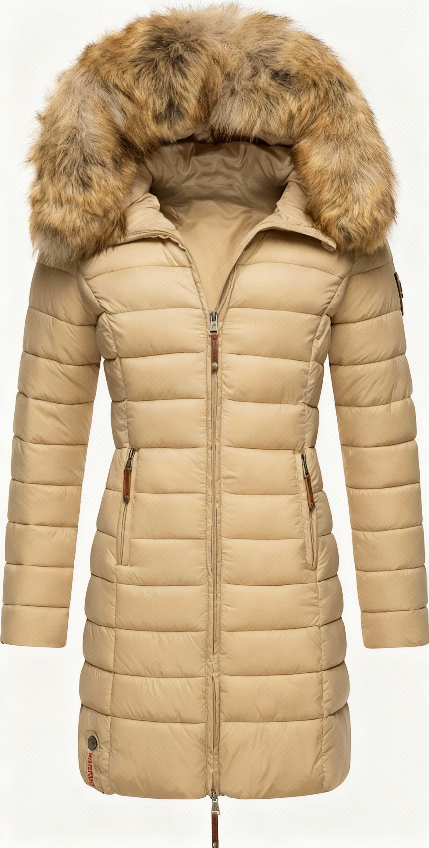 DOMINIKA - Prošívaný kabát s kožešinovou kapucí