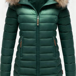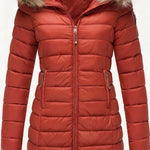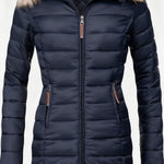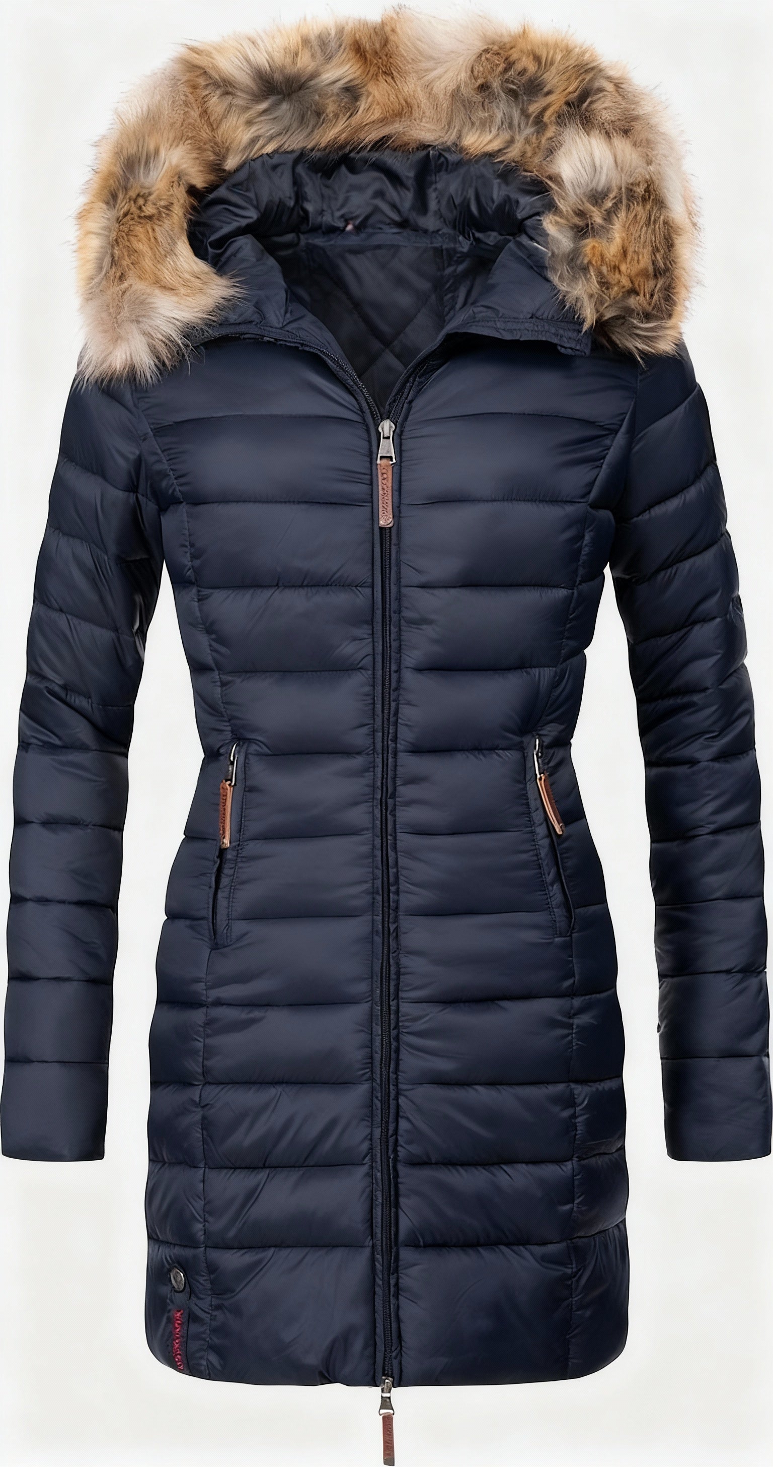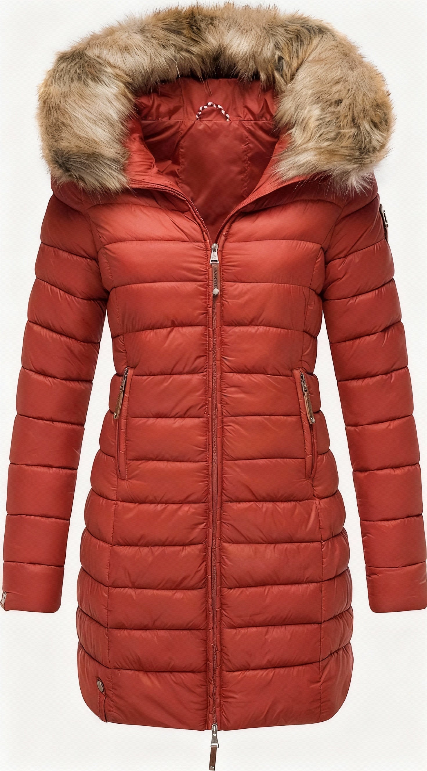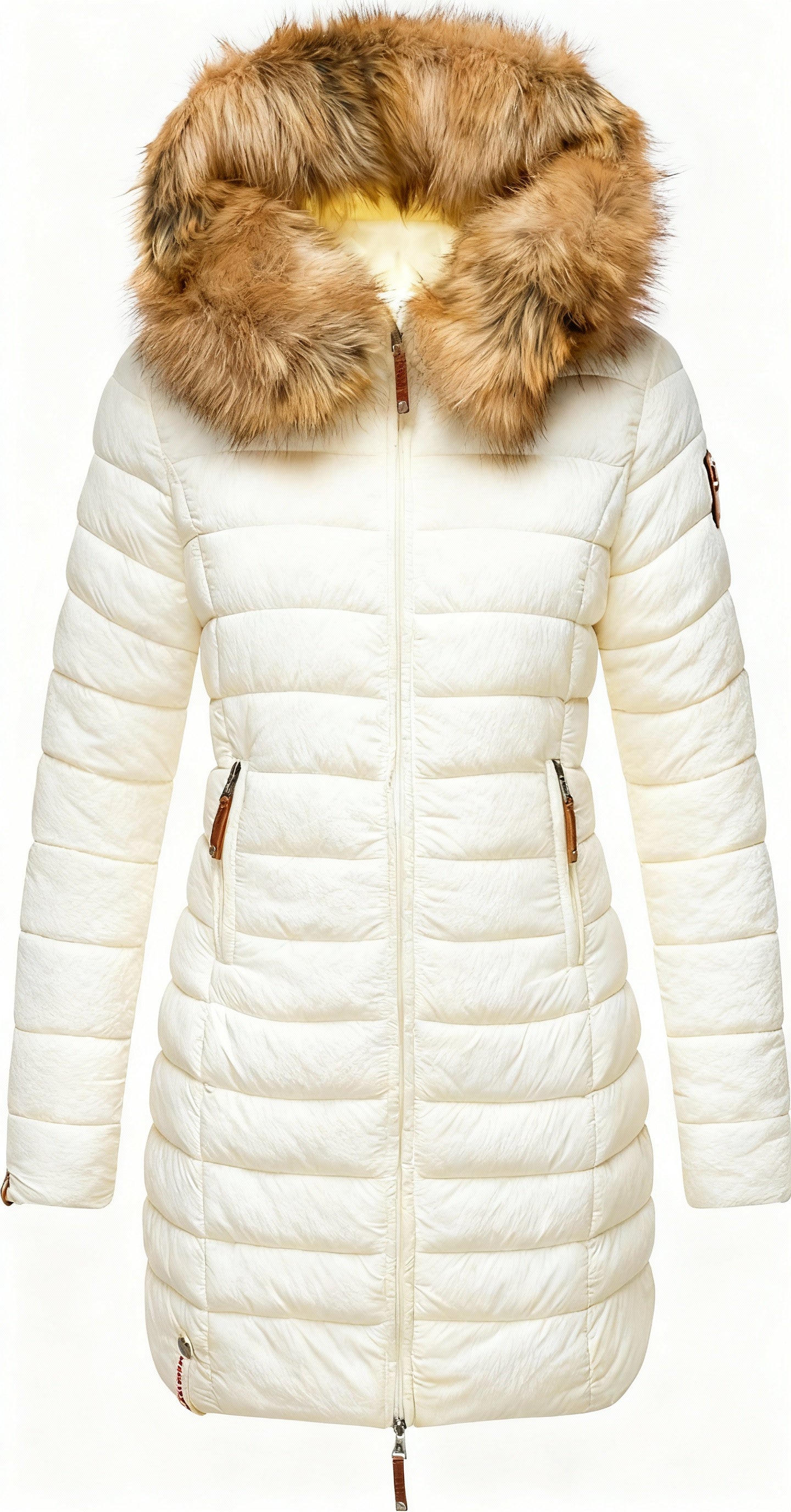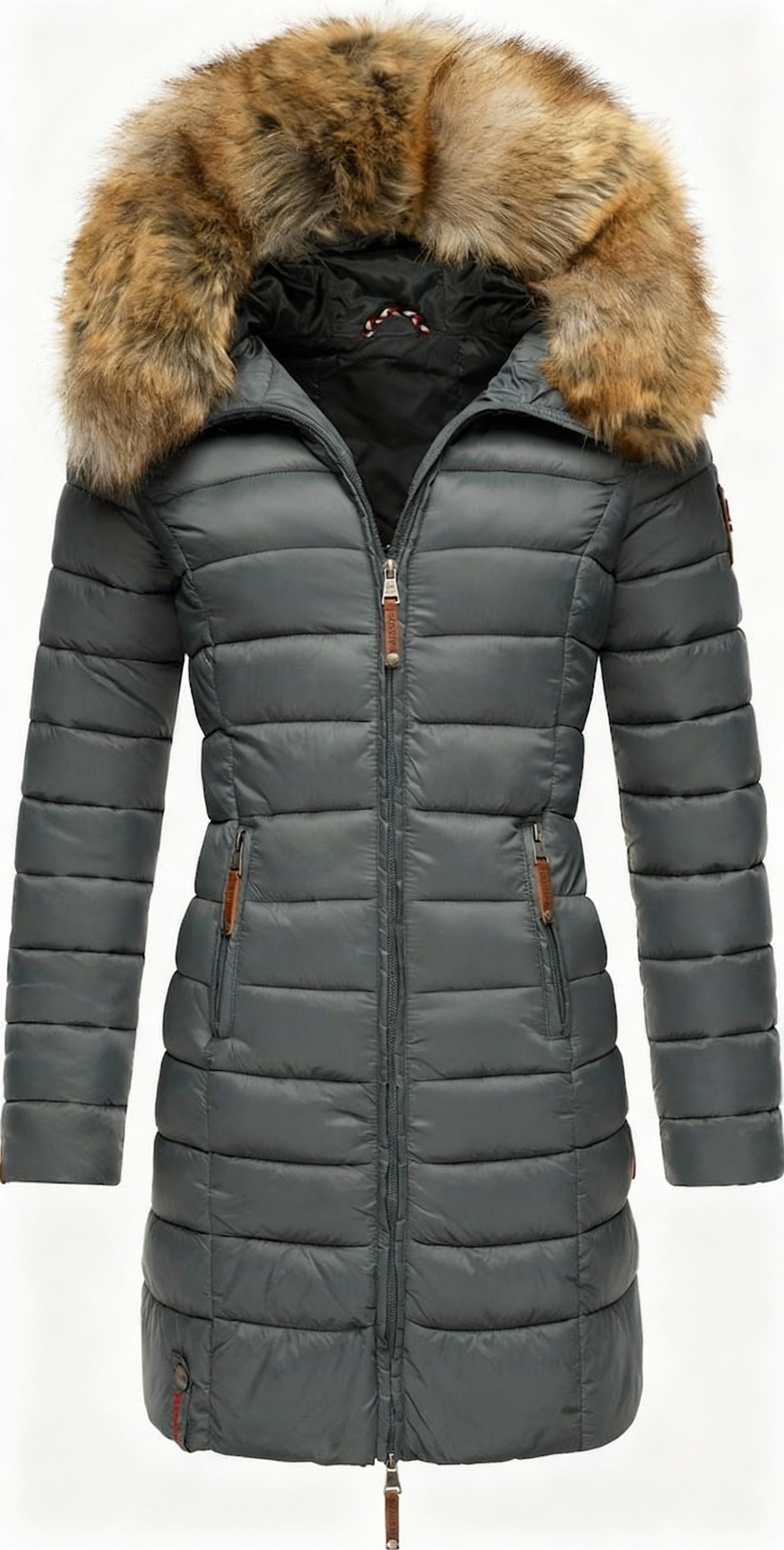 DOMINIKA - Prošívaný kabát s kožešinovou kapucí