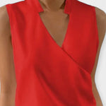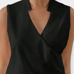 Bezrukové monofarebné tílko s překříženým V-dekoltem je elegantní a pohodlný kousek pro každodenní nošení. Lehká a vzdušná látka zajišťuje svěží pocit v létě a dodává outfit nenápadný, sofistikovaný vzhled.