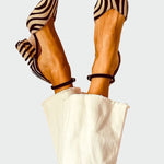 Lodičky s ostrou špičkou ve vzoru zebra as páskem kolem kotníku pro pevné držení. Tento módní kousek kombinuje odvážný vzor se sofistikovaným designem , který vašemu outfitu dodá výrazný šmrnc pro večerní vycházky i formální příležitosti.