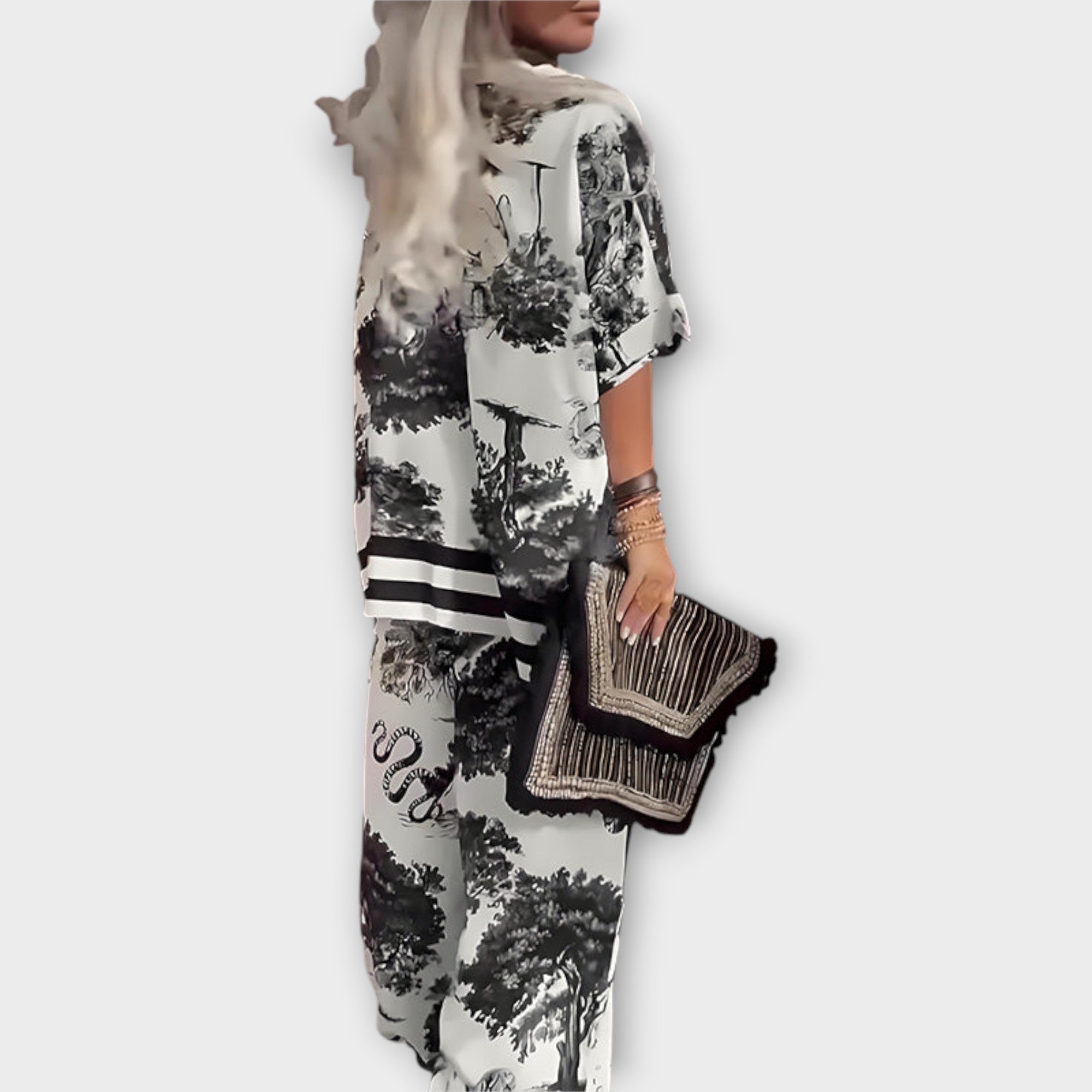 Představujeme set s volným střihem a nadčasovým stylem, který podtrhne vaši osobnost a zároveň zajistí komfort po celý den. Díky minimalistickému designu a uvolněné siluetě je ideální pro každou příležitost — od pohodových momentů po sofistikované outfity. Tento komplet spojuje jemnost materiálu s praktickou elegancí a nabízí nadčasový charakter, který nikdy nevyjde z módy.