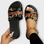 Zažijte divokou, ale zároveň stylovou letní módu s dámskými sandály. Kombinace černé, hnědého a zvířecího vzoru ( Leopardí potisk) vytváří odvážný a sofistikovaný vzhled pro každý den. Tento design promyšleně spojuje módní trend s pohodlným každodenním nošením.