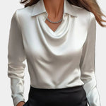 Elegantní Bílá Saténová Blůza Se Drapovaným Dekoltem