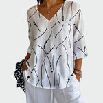 Elegantní halenka v bílé barvě se černými pruhy a puntíky představuje dokonalé spojení jednoduchosti a sofistikovanosti. V-výstřih podtrhuje ženskost, zatímco lehká, vzdušná látka zajišťuje komfort po celý den. Moderní vzor s černými liniemi a puntíky dodává outfitu šmrnc a lichotí dekoltu . Tři čtvrté rukávy poskytují pohodlí a styl. Lehká, pohodlná silueta je ideální pro každodenní nošení i pro elegantnější vzhled.