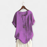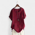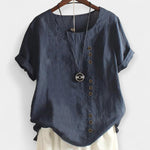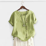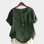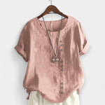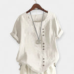 Objevte pohodlí a styl s touto elegantní jednobarevnou krátkou blůzou s kulatým výstřihem a knoflíky. Ideální pro každou příležitost — od každodenních procházek městem až po formálnější outfity. Spojuje kvalitu zpracování, komfort a nadčasový design.