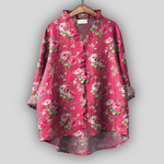 Lněná Halenka Růžová S Květinovým Motivem Pro Jaro Léto