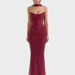Elegantní Laura Maxi Drapované Šaty s Korzetem a Dekoltem