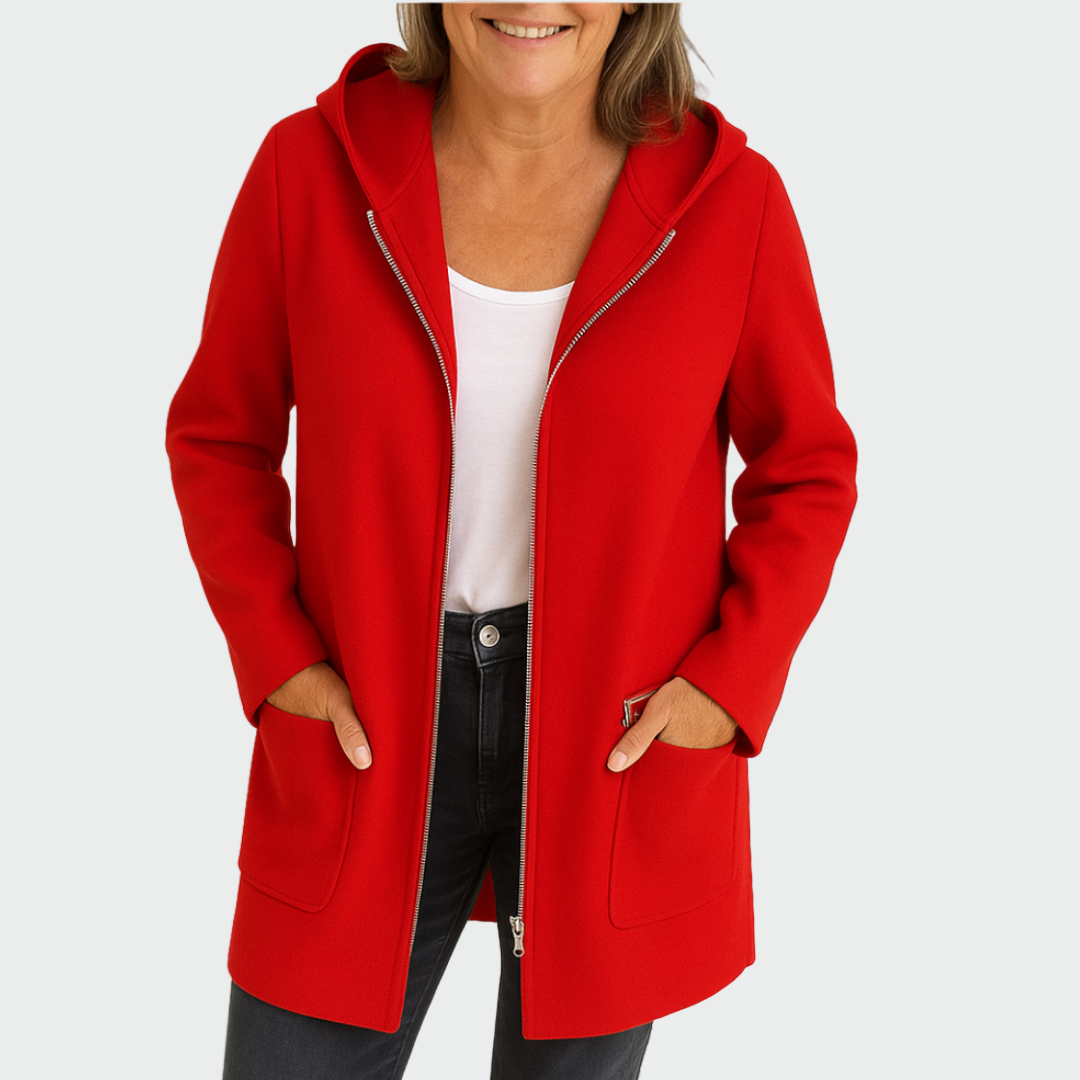 Červený kabátek s kapucí spojuje praktičnost a styl. Pohodlný střih a kapuce poskytují ochranu a komfort, zatímco sytá červená barva dodává energii každému outfitu. Je teplý a pohodlný na nošení, kapuce chrání proti chladu a přední kapsy nabízí praktické místo pro drobnosti. Ideální volba pro každodenní podzimní a zimní looky.