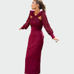 Elegantní Burgundské Midi Šaty S Průstřihy Dekoltu