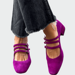 Objevte hravý a elegantní vzhled s balerínami s třemi páskami ve výrazné fialové barvě. Tato kombinace sofistikovanosti a hravé nálady dodá vašemu outfitu šmrnc a pohodlí po celý den.