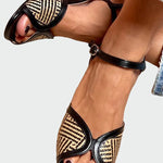 Elegantní sandály z pleteného materiálu v černobéžovém vzoru spojují sofistikovaný vzhled s maximálním pohodlím. Otevřený přední díl dodává ženskost, zatímco nastavitelný pásek na kotník zajišťuje stabilitu a jistotu v každém kroku. Čtvercový podpatek přináší pohodlí a styl bez kompromisů.