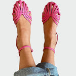 - Opletené pásky – sofistikovaný vzhled s jemnými liniemi, které podtrhují šarm nohy.