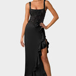 - Korzetový střih – tvaruje postavu a dodává šatům sofistikovaný nádech.