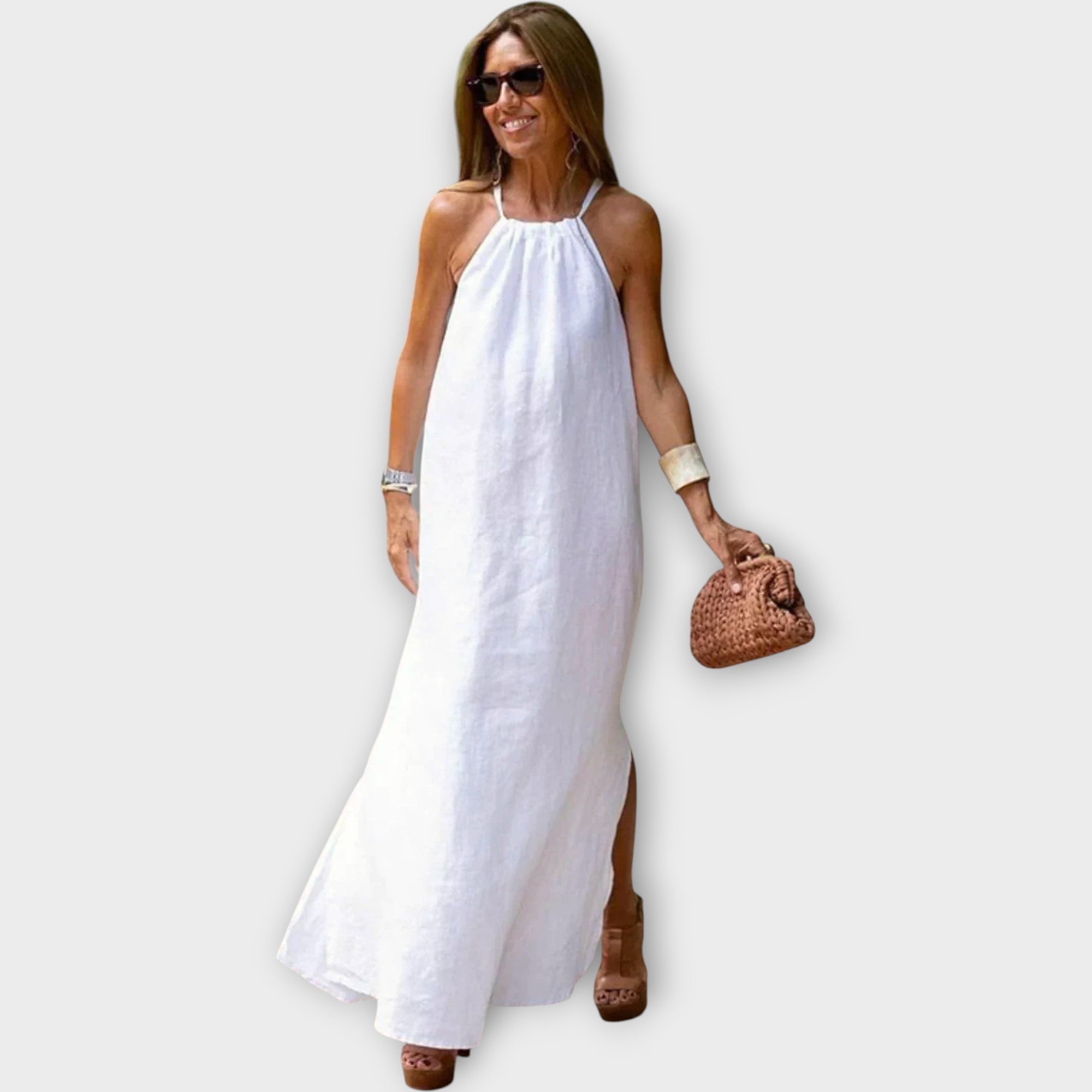 Vzdušné maxi šaty s minimalistickým designem zdůrazňují přirozenou eleganci díky jednoduchosti. Volný střih a jemná textilie zaručují pohodlí a volnost pohybu po celý den, zatímco čistý vzhled se hodí jak na každodenní nošení, tak na zvláštní příležitosti.
