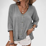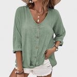 Blůza Anna je nezbytným kouskem pro váš letní šatník. Je vyrobena z lehkého a prodyšného lněného materiálu, který je ideální pro horké dny a zároveň příjemný na dotek. Její nadčasový střih s elegantním výstřihem do V a jemným knoflíkovým zapínáním dodává blůze sofistikovaný, ale uvolněný vzhled. Ať už ji zkombinujete s šortkami, kalhotami nebo sukní, budete vždy vypadat šik a cítit se pohodlně.
