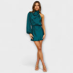 Subtilní elegance s moderním nádechem—šaty Mara okouzlují svým asymetrickým designem a jemným spadením, které elegantně obepíná postavu. S výstřihem na jednom rameni a strategickou drapérií nabízejí rafinovaný a pohodlný vzhled pro zvláštní příležitosti nebo nezapomenutelné noci.
