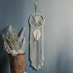Navrženo pro trvanlivost, tyto makramé nástěnné dekorace jsou pevně vyrobené a mohou být snadno zavěšeny na laně omotaném kolem přírodního bambusového kolíku. Jednoduchý a elegantní makramé závěs dodává každému prostoru nebo události nádech tepla a krásy, což z něj činí dokonalou dekoraci pro jakoukoli místnost.