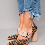 Selveta | Sandálias em camurça com padrão de leopardo e salto estável