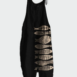 Retro overal s květinovým vzorem je ikonou elegance a pohodlí. Jeho jedinečný design v sobě snoubí umělecký nádech s praktickým vzhledem, černé pozadí doplněné béžovými motivy tvoří výrazný a sofistikovaný vzhled. Tento kousek je určen pro ženy, které chtějí vypadat stylově a zároveň se cítit komfortně během celého dne.