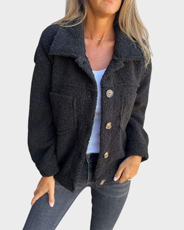 Tato bunda plní vašemu každodennímu šatníku teplo a ležérní styl. Její krátký, rovný střih s klasickým klopovým límcem kombinuje strukturu a měkkost. Jednoduché zapínání na knoflíky a našité kapsy dodávají bundě jemné detaily, zatímco její textura zajišťuje příjemný a hřejivý pocit na dotek. Bunda se perfektně hodí na procházky po městě, neformální výlety nebo klidné večery.